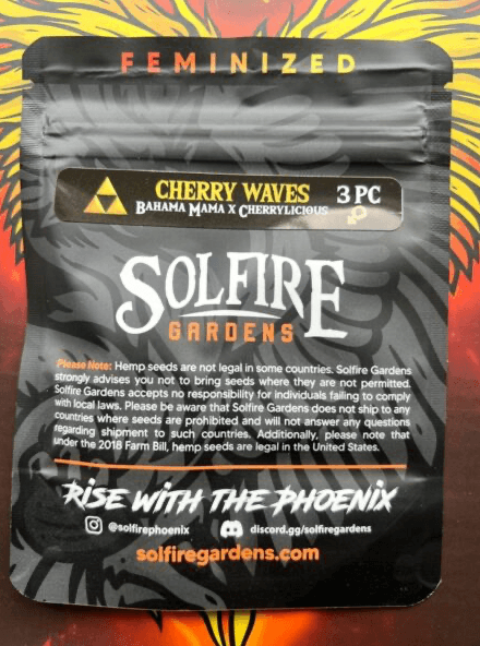 Cherry Waves es una selección especial de Solfire Gardens, resultado del cruce entre Bahama Mama (predominantemente sativa, conocida por su aroma a tangerina berry) y Cherrylicious (balanceado, dulce y cremosa con linaje Lemon Cherry Gelato × Udder Madness)